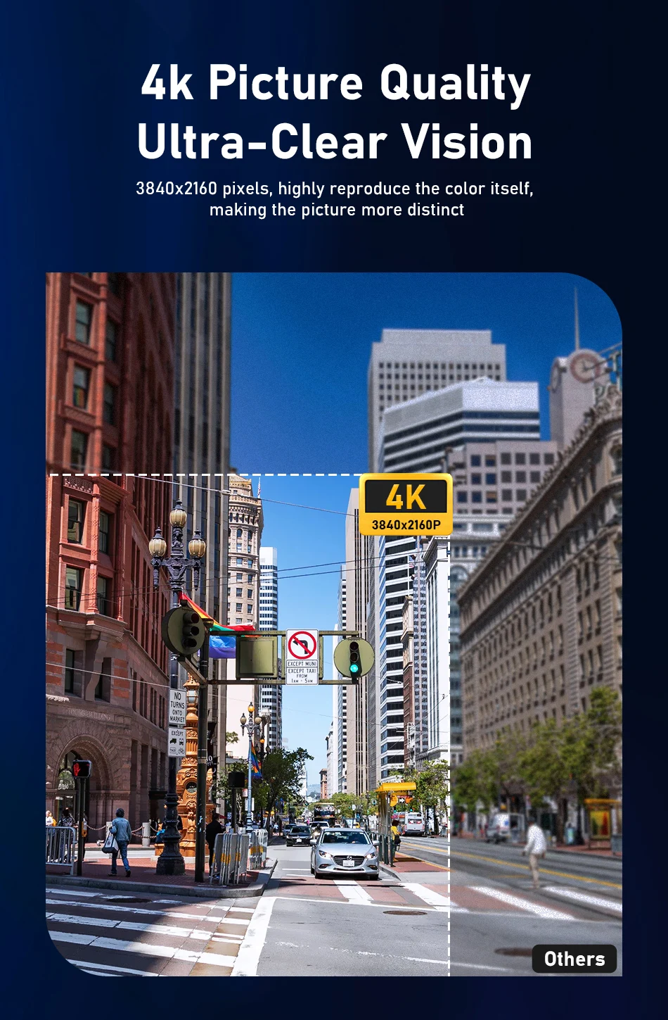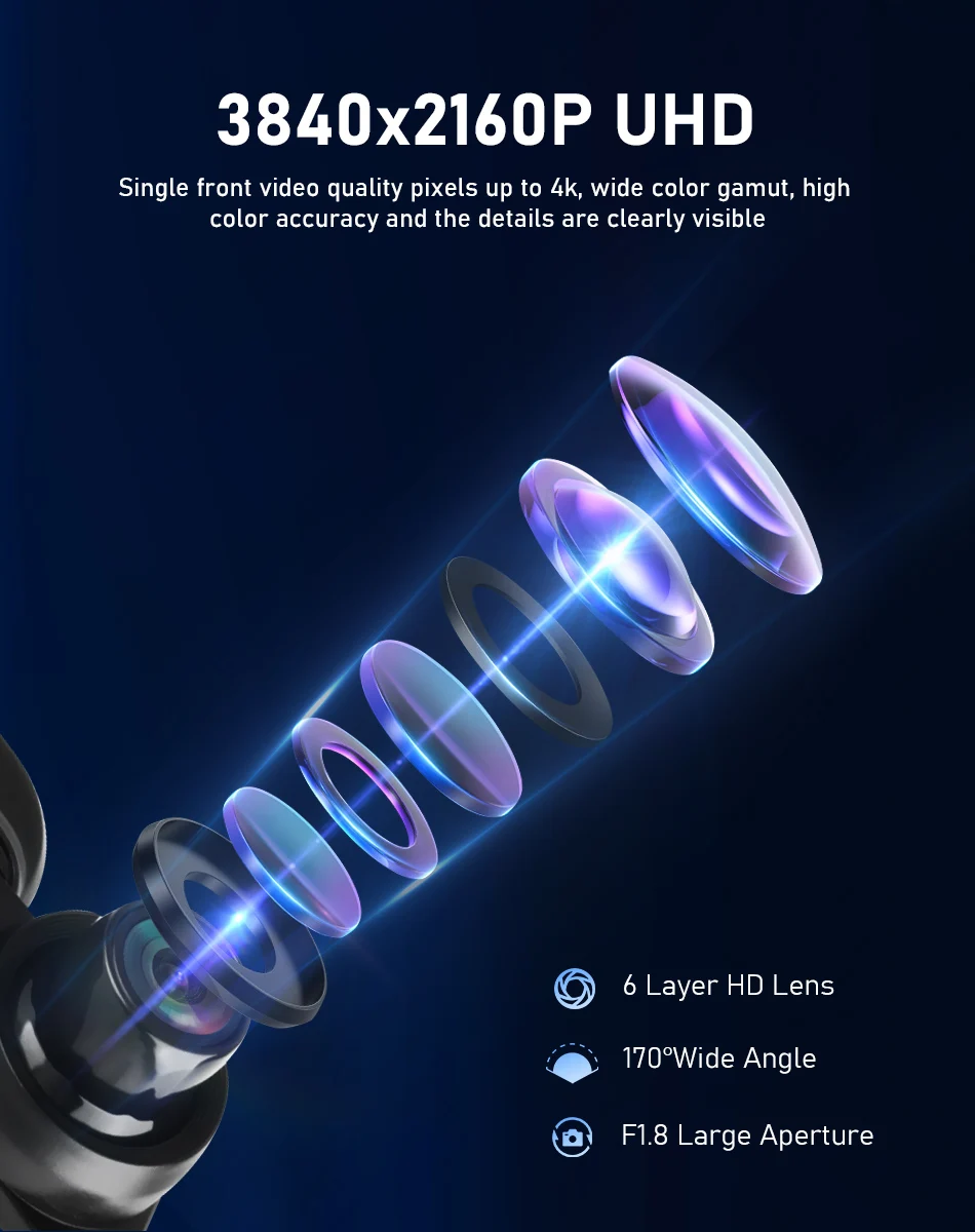Com uma lente grande angular de 170 graus, a câmera pode monitorar confortavelmente 3 faixas.Esta câmera não tem pontos cegos.Aproveite sua jornada e obtenha capturas precisas e detalhadas.