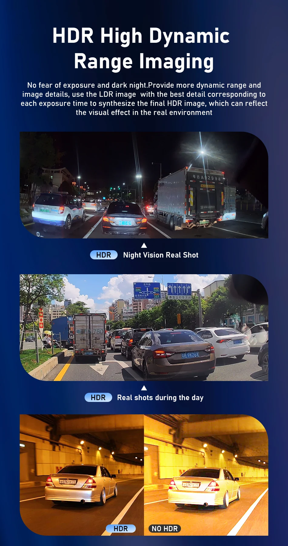 Imagem HDR de alta faixa dinâmicaSem medo de exposição e noite escura.Fornece mais faixa dinâmica e detalhes de imagem, use a imagem LDR com os melhores detalhes correspondentes a cada tempo de exposição para sintetizar a imagem HDR final, que pode refletir o efeito visual no ambiente real.